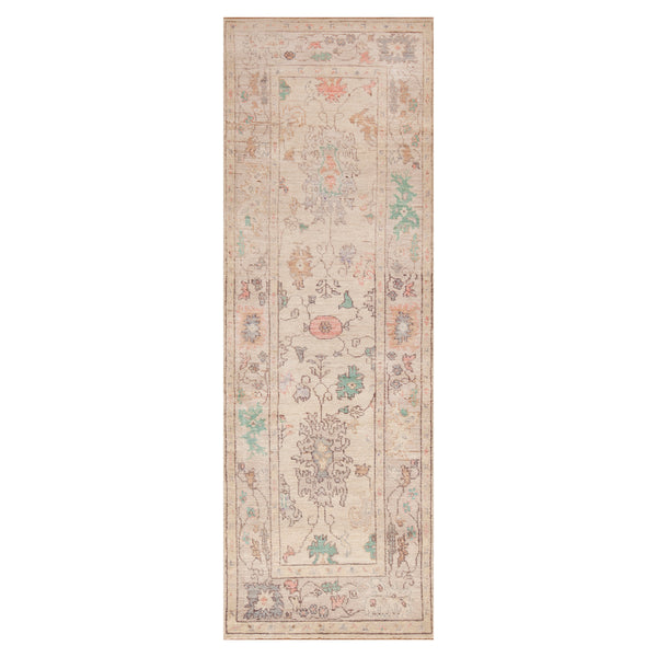 The Natural Zameen Transitional Wool Runner is a hand-knotted rug from Central Asia, known for its quality craftsmanship and distinctive design. This runner blends traditional weaving techniques with a contemporary aesthetic, making it versatile for diverse interior styles. Featuring a natural color base, the runner displays subtle botanical and floral motifs. These patterns are rendered in muted pastel shades, including hints of green, coral, and soft blue, creating a gentle and harmonious appearance. This transitional style allows the rug to...