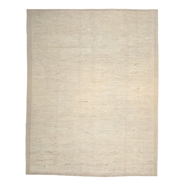 The Ivory Zameen Textured Wool Rug, measuring 8'5" x 10'3", offers a durable and aesthetically versatile flooring solution. Crafted from 100% natural wool, this area rug provides inherent softness, warmth, and resilience underfoot. Its solid ivory hue serves as a neutral base, complementing a wide range of interior palettes and design styles. The "Zameen" aspect refers to its subtle, naturally textured surface, characterized by fine horizontal lines that add depth without overt patterns. This rug is hand-knotted by artisans in...