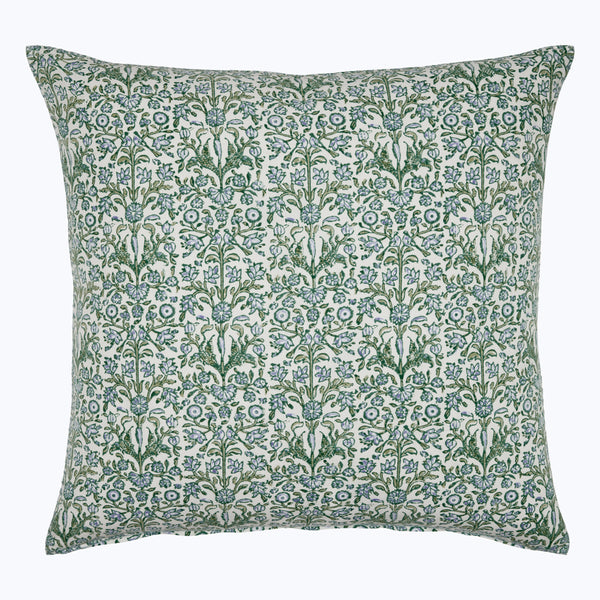 SpecificationsHand block printed, printed on both sides. Hand stitched edging in mist. Hidden zipper closure.
