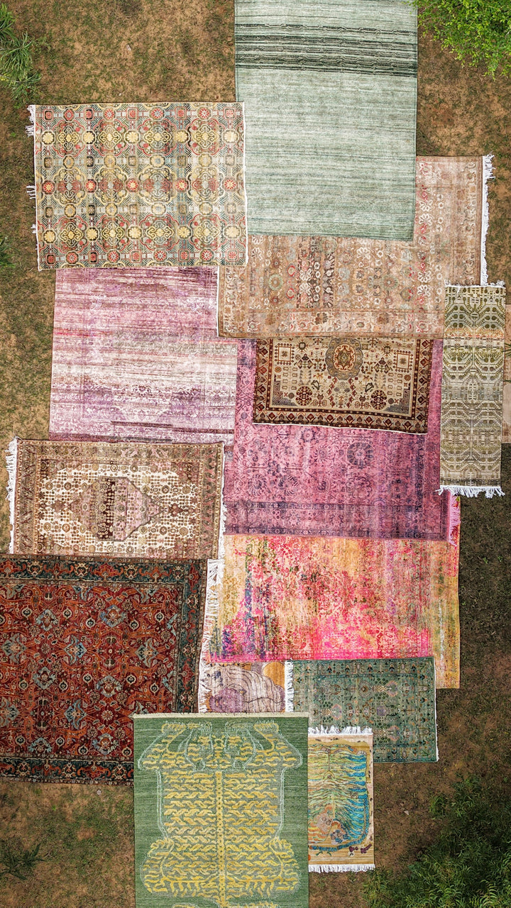 "Colors that ranges from earthy hues to brilliant gems, the rugs infuse a room with a sense of sophisticated rebellion. Nature-inspired motifs are the focal point in lieu of more traditional motifs.”